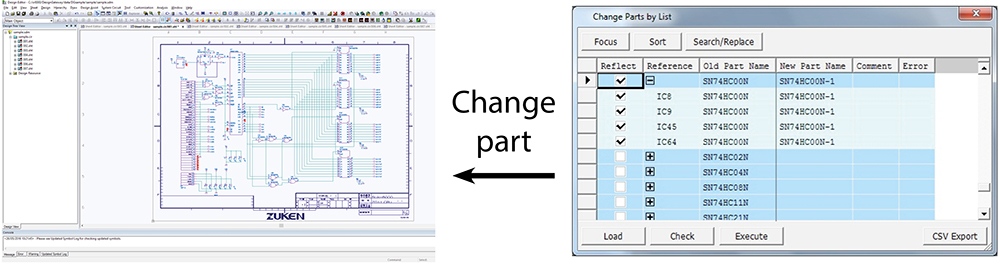 Eine automatisierte Komponententausch-Funktionalität ermöglicht eine erhebliche Reduzierung des manuellen Änderungsaufwands. Komponenten, die getauscht werden sollen, können in der Verbindungsliste ausgewählt und automatisch ersetzt werden. Damit entfällt ein zeitaufwändiges und vor allem fehlergefährdetes Suchen und Prüfen der betroffenen Bauteile.