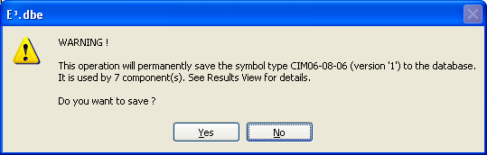 When exiting Database Editor mode, the following message will be displayed for each symbol or component that was changed: