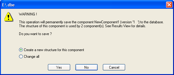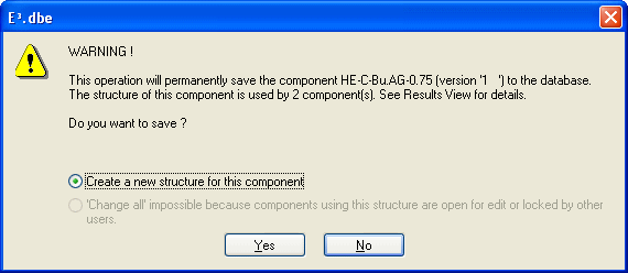 When saving the component before exiting DBE mode using the Save to Database... command and if the edited component's structure is also used by other components that are currently opened for edit, the message will look like this: