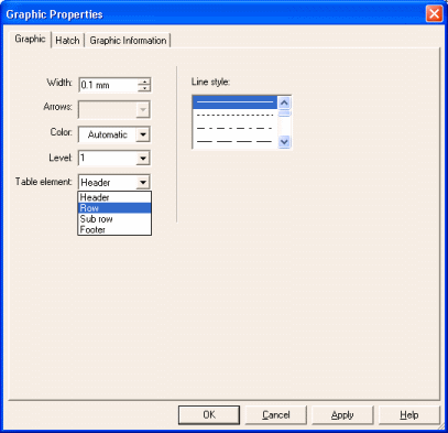 Select the desired table element in the graphic and specify its Table element in the Graphic Properties...: