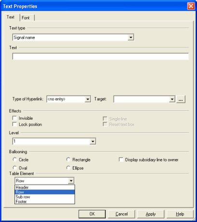 These texts must also be assigned the corresponding table element in the Text Properties...: