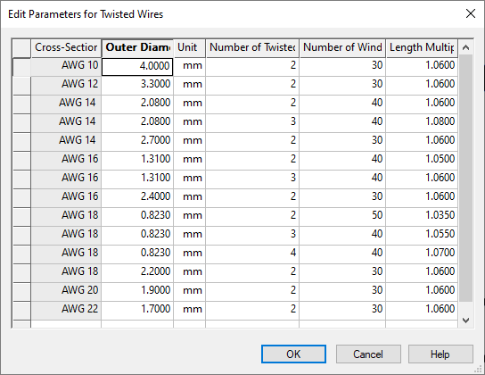 Edit Parameters for Twisted Wires