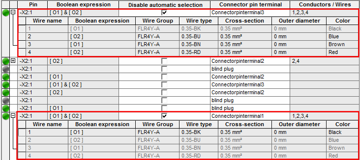 NoteIf a pin is not able to accept all wires based on the defined connector pin terminal, the wires are automatically distributed to equivalent pins. The unplaced wires are displayed in the wire information as gr