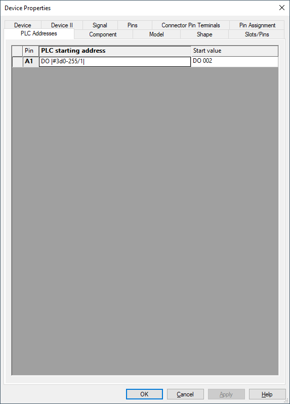 The following dialog box is only displayed if the PLC Start Address attribute (.PLCADDR) has been assigned to a pin of the I/O element.