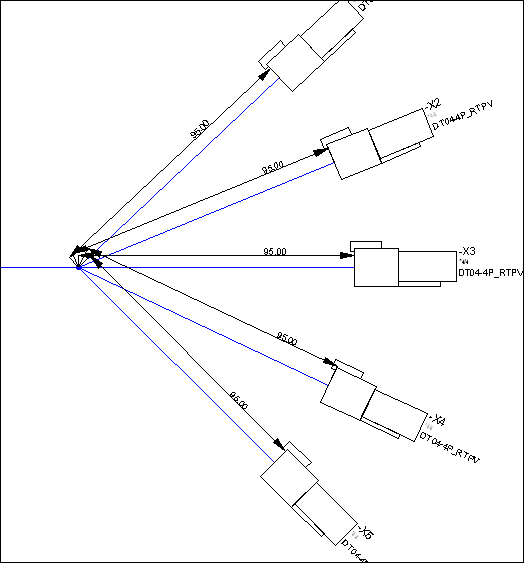 If the distance between the arrows is too short to display, the arrows automatically point at the subsidiary lines 'from the outside':