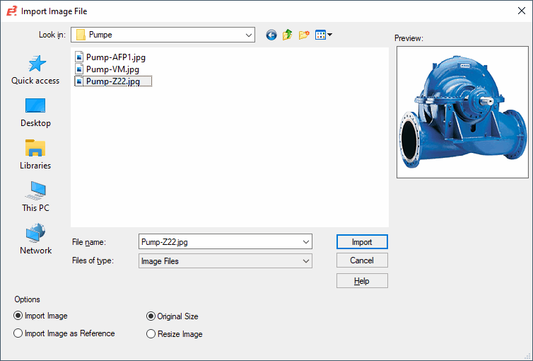 Left-clicking places the image in the drawing and moving the cursor, prior to releasing the mouse button, adjusts the size of the image.
