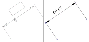 Move with the cursor away from the start point and left-click again, at the end point of the dimension, then move the cursor to the position at which you want the dimension text to appear and left-click to display the dimension.