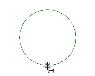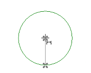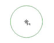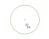 • move the dimension cursor into the circle (Example: 2nd step) over the circle's center (Example: 3rd step). The start point is identified by a cross.