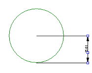 • Move the cursor back to the circle's center and left-click on the center as soon as the dimension cursor's cross is displayed (Example: 5th step).