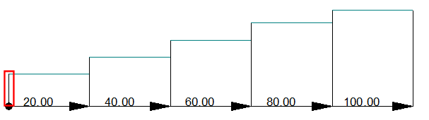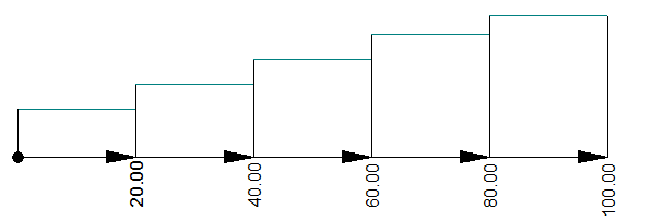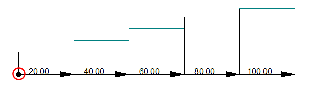 The filled circle denotes the starting point and reference point of the dimension. From there the individual length specifications are calculated:
