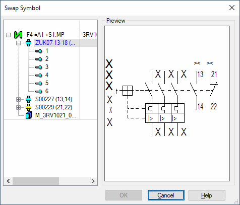 To exchange a symbol right-click on the desired symbol on the sheet and select the Swap symbol command from the displayed context menu.