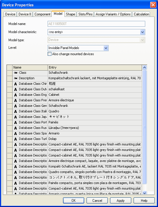 To make the devices invisible, which are plugged or placed on the selected model, activate the option Change mounted devices also.