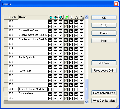 First, any level should be defined (e.g. "Panel - invisible"). Open the Levels dialog field and select the View -> Levels... command in the main menu toolbar or the Hotkey L: