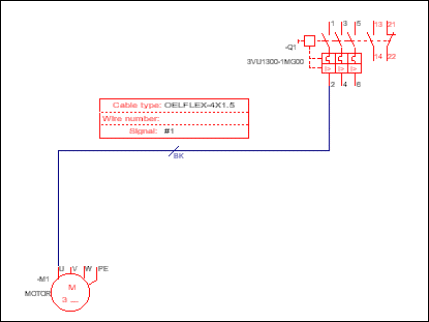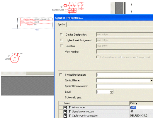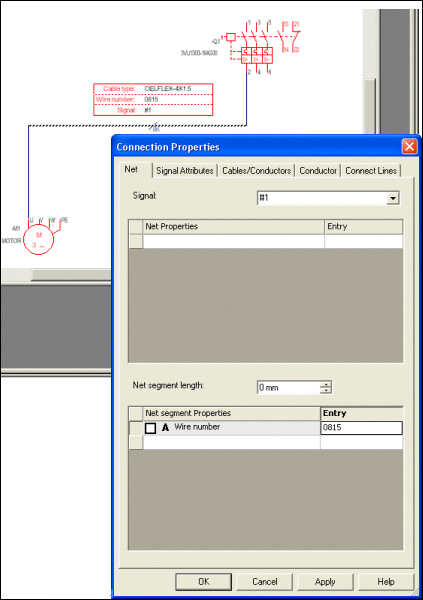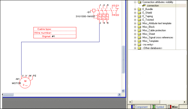 The attribute text template can now be dragged from the Database window onto the connect line. The connect line's attributes are displayed on the symbol's text nodes. If the text is modified the connect line's attributes are adjusted.