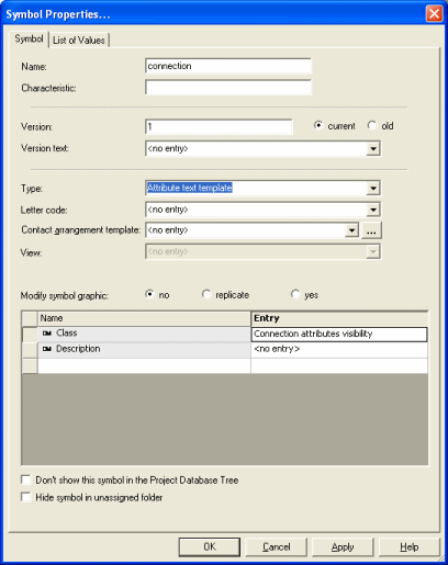First of all, create a special template symbol that is to display the attributes on a connect line. Its symbol type is Attribute text template.