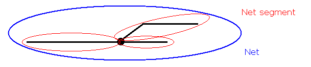 A 'net segment' displays a connect line from a connect point (e.g. a pin or a connection of another connect line) to the other connect point.
