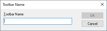 The button opens the Toolbar Name dialog to define the name of the new toolbar.