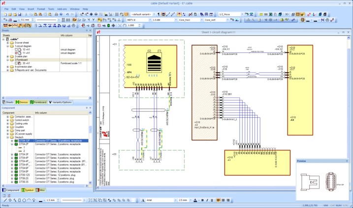 E3.cable extends the functionality of E3.schematic enabling individual conductors to be combined together in the design to form cables and harnesses.