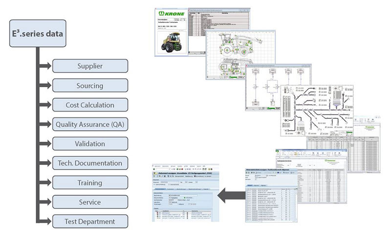 KRONE had been using Zuken’s E3.series electrical design tools since 2006, but mainly for documentation purposes. “The integration and process support capabilities provided by E3.series were largely unused during the initial years, ,” recalls Dr. Korn, CIO of the KRONE Group. It was my colleagues from electrical engineering and technical IT departments who promoted E3.series and its integration into our sourcing and mechanical engineering processes. Up to that time, the cable harness was more or less an afterthought, which was designed after the mechanical design was close to completion.”